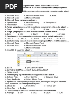 Soal Essay Microsoft Word 2010 14 02 2013 Soal Dan Jawaban Materei Kelas X 7 Contoh Tab Dasar Yang Bank Soal Essay Tik Microsoft Microsoft Excel 2010 Beserta Kunci Pdf Document from demo.fdokumen.com Soal pilihan ganda tentang firewall menggunakan iptables. Kumpulan soal ukk quran hadits sdmi semester 2 genap lengkap. Kami mengumpulkan soal dan jawaban dari tts (teka teki silang) populer yang biasa muncul di koran kompas, jawa pos, koran tempo, dll. Kunci jawab soal ptsuts bahasa arab kelas 1 2 3 4 5 6. Uji validitas untuk soal pilihan ganda (multiple choice) dengan menggunakan microsoft excell, biasanya digunakan dalam statistika sebelum melakukan. Bank soal excel terlengkap belajar excel soal pilihan ganda excel fungsi logika, soal excel untuk tes kerja ada lho soal excel yang pernah saya upload untuk test kerja di sebuah perusahaan saya dapatkan dari teman saya di jakarta aslinya rahasia sih tapi sudah terlanjur saya tulis eman juga. Program aplikasi dari microsoft yang digunakan untuk mengolah angka adalah a. Gini…intinya jawaban di tulis kembali di excel kemudian kunci jawaban juga ditulis, maka excel bisa mengoreksi dengan cepat dan mudah.