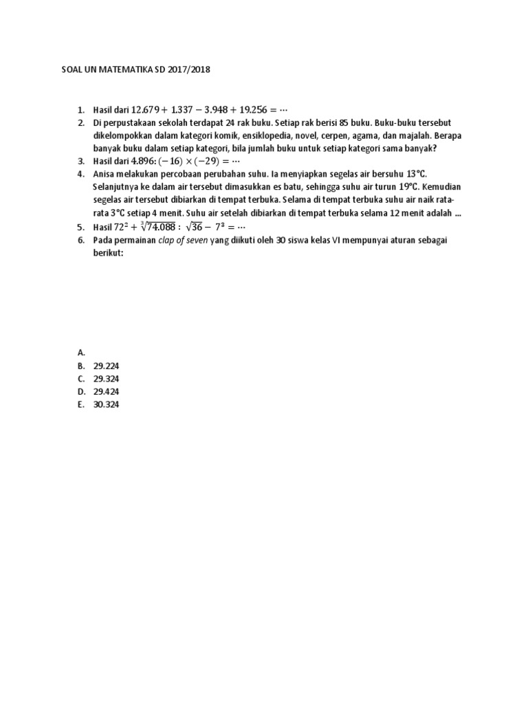 Soal un sd 2018 matematika. Check spelling or type a new query. Maybe you would like to learn more about one of these? We did not find results for:
